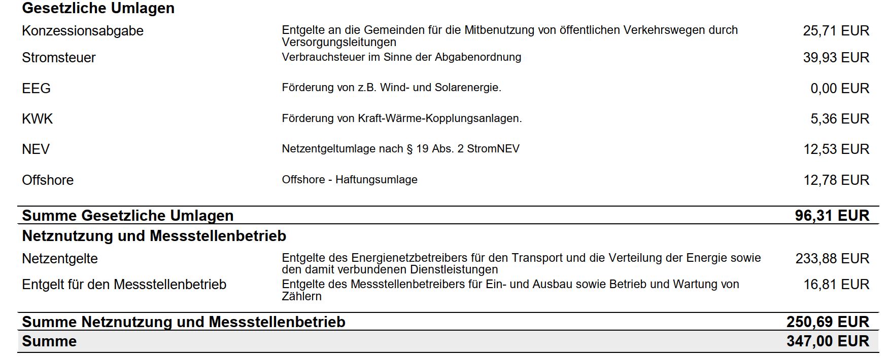 Für ein leichteres Verständnis der Rechnung haben wir für Sie die wichtigsten Bestandteile einmal erklärt.